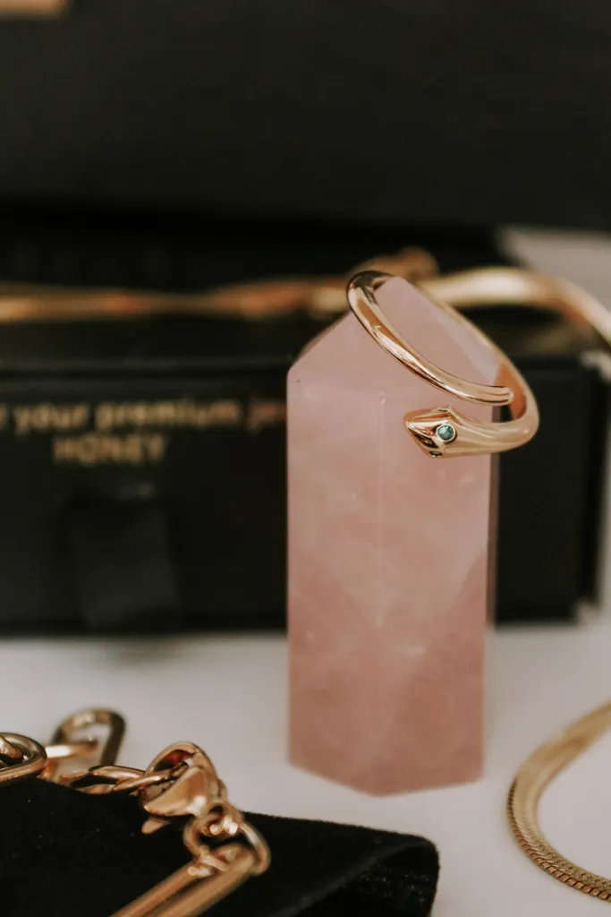 I’m not sure what this particular ring is called because I can’t find it on the website but I was thrilled to receive this ring because I love snakes and I love the little green gemstone eyes in this one. Rings and ring stacking is a great way to accentuate any outfit. And a ring like this would definitely be a more statement piece for a Spring outfit.
